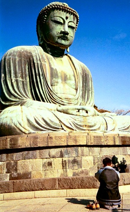 Daibutsu Published September 10, 2009 at 450 × 735 in My Photography Kamakura (The Great Buddha), Japan (late-2001) This is the largest bronze statue in the world and stands 40 feet high. You can actually pay a small fee and walk inside. I took this photo in late-2001.